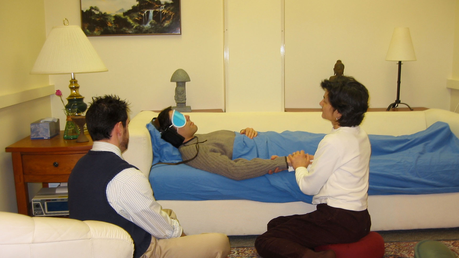 A kísérlet során a terapeutája felügyeletével egy szófán kellett feküdnie, miután MDMA-t kapott.