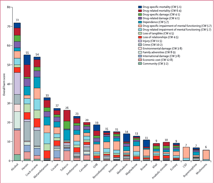 Ami az MDMA-t illeti, az csupán a lista végén kullog, jóval a legális dohány után.