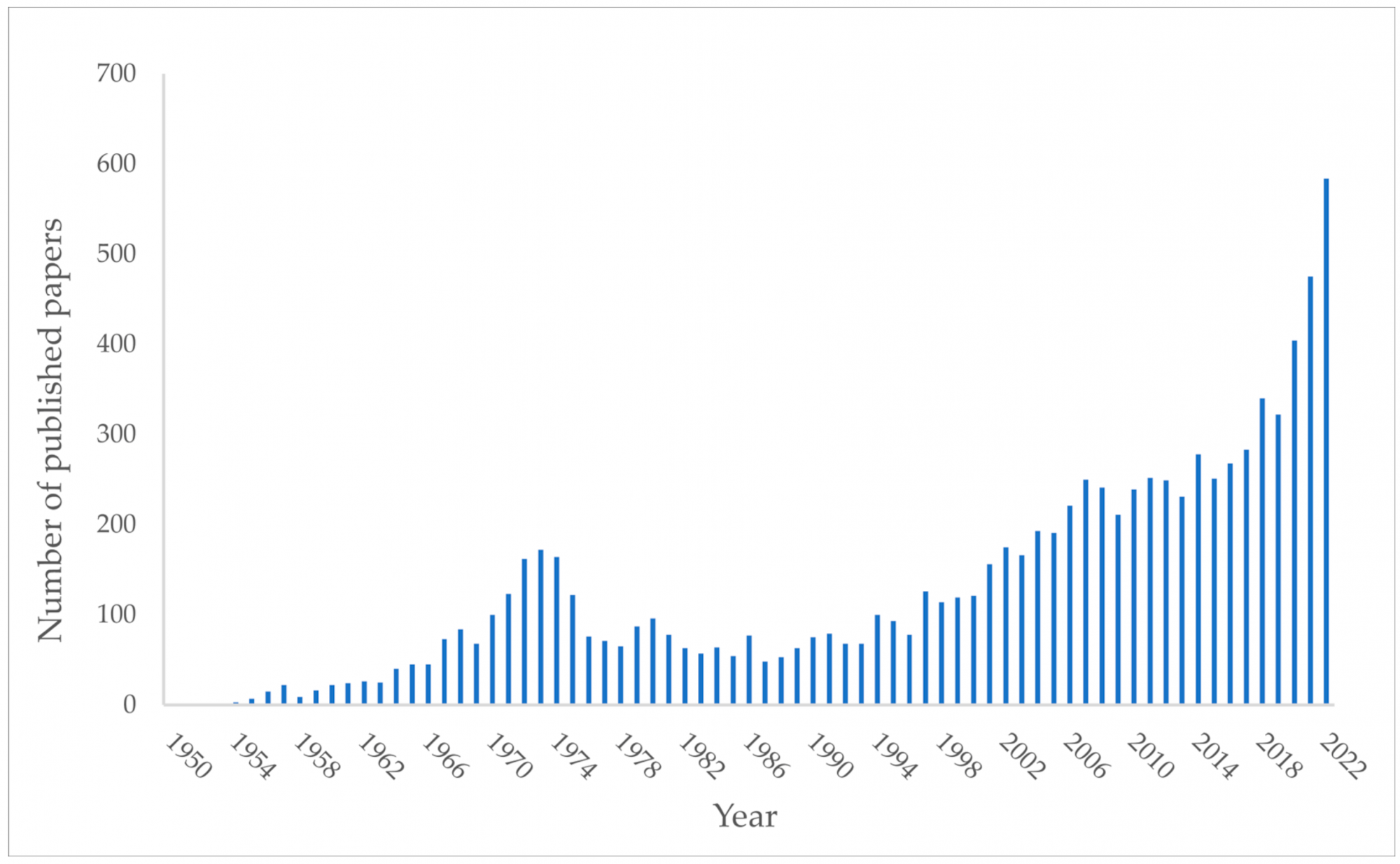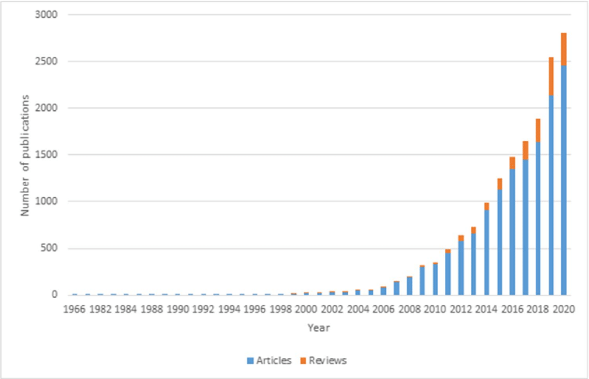 Ha megnézzük a mindfulness-el és a pszichedelikumokkal kapcsolatos kutatások alakulását mutató diagramokat, akkor azok hasonló trendet mutatnak. A 70-es évektől a 90-es évek végéig alig maroknyi kutató évente alig pár cikket publikált szaklapokban. A 2000-es évek elejétől azonban a publikált cikkek száma exponenciálisan nőtt - és a növekedés azóta is tart, sőt, gyorsul. Ma már évente több ezer cikket publikálnak mindfulness témában, míg a pszichedelikus témában ezernél is többet.