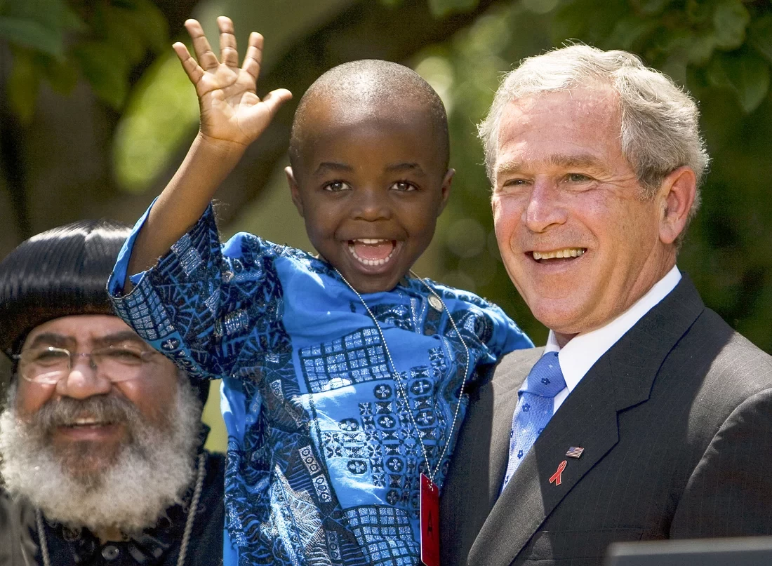 A képen látható öltönyös férfi bizonyára sokaknak ismerős: George W. Bush volt amerikai elnök. Rá ugye nem éppen úgy emlékeznek, mint valami liberális elnökre: kimondottan konzervatív világnézetet képviselt még a republikánus párton belül is. Politikáját e cikk szerzője is katasztrofálisnak ítélte és ítéli még ma is egy csomó vonatkozásban, az iraki háborútól a szigorú drogpolitikáig. És mégis, az amerikai zászlós jelvény alatt rögtön ott láthatunk a zakóján egy másik jelképet is. Ez a vörös szalag (red ribbon) a HIV-járvány elleni összefogás, a HIV-vel élők iránti szolidaritás jelképe. És akit Bush a karjában tart, egy HIV-vel élő dél-afrikai anya, Kunene Tantoh gyermeke. A kép 2007-ben készült a Fehér Házban, négy évvel azután, hogy Bush létrehozta a PEPFAR (President's Emergency Plan for AIDS Relief) nevű programot. Tantoh volt a program egyik kedvezményezettje, akire valószínűleg hosszú, gyötrelmes haldoklás várt volna a program nélkül - és lehet, hogy a gyermekre is.