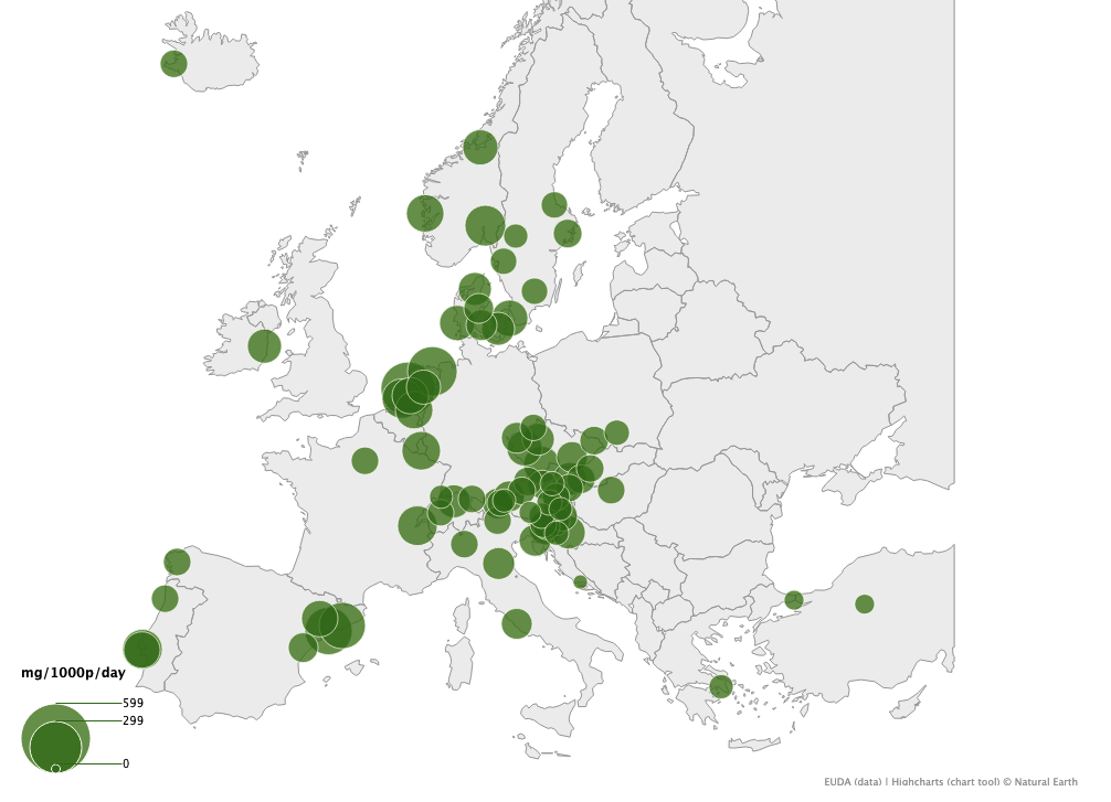 Ami a stimuláns szerek fogyasztását illeti, Európa hagyományosan két részre szokták felosztani: az inkább kokaint fogyasztó nyugati és déli régióra, és az inkább amfetamint/metamfetamint fogyasztó északi és keleti régióra. Ez a határ a mostani szennyvízvizsgálatból is kirajzolódott. Ugyanakkor a kokain fogyasztása egész Európában, így Keleten is nő. Budapesten például már magasabb, mint a kelet-európai átlag, bár nem éri el Bécs vagy Prága fogyasztását. Az amfetamin (speed, spuri) tekintetében viszont Budapest veri Prágát és Bécset, kiugrik az európai átlagból és csak Hollandiában és a hagyományosan amfetamin-fogyasztó Skandináviában látunk hasonlóan magas számokat. A metamfetamin fogyasztása ezzel szemben jóval kisebb, mint a szomszédos Szlovákiában és Csehországban. Ennek magyarázata az, hogy az egykori Csehszlovákia a keleti tömb vegyipari-gyógyszeripari központja volt, és itt állították elő a pervitint (metamfetamin), amelynek a fogyasztása elterjedt a lakosság körében.