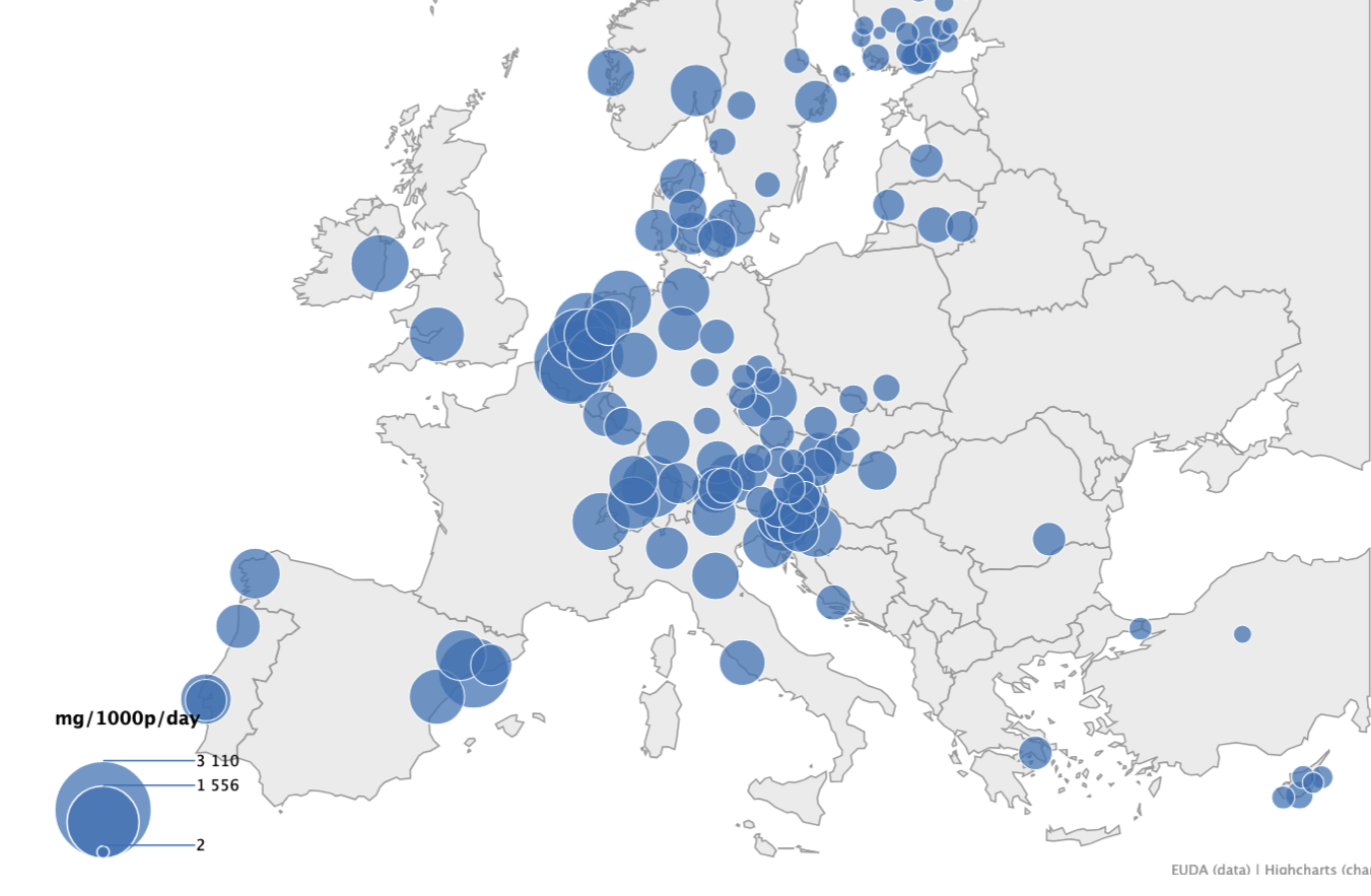 Az európai drogügynökség (EUDA) tegnap tette közzé annak az európai szennyvízvizsgálatnak az eredményeit, amit 26 ország 128 városában végeztek el. A vizsgálat során a nagyvárosok csatornáiból vettek mintát, hogy azokat laboratóriumban bevizsgálva következtessenek hat drog fogyasztásának elterjedtségére (amfetamin, metamfetamin, MDMA, kokain, ketamin és kannabisz). Az ilyen szennyvízvizsgálatok különösen érdekesek abból a szempontból, hogy mentesek a nagy lakossági epidemiológiai vizsgálatok módszertani fogyatékosságaitól. Amelyek az olyan országokban, mint Magyarország, ahol szigorú a drogszabályozás, a válaszadók félelme miatt nehézzé teszik a valós trendek feltárását. A szennyvíz azonban nem hazudik.